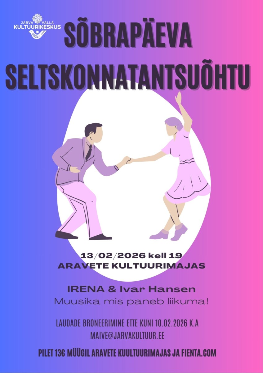 20. veebruaril kell 18 Päinurme rahvamajas Eesti Vabariigi 108. aastapäeva kontsertaktus Järva valla aasta teo auhinna ja teiste tunnustuste üleandmine. Esinevad Duo Sumin koossseisus Liana Zeigo ja Ragnar Häide. Meeleolutekste […] |