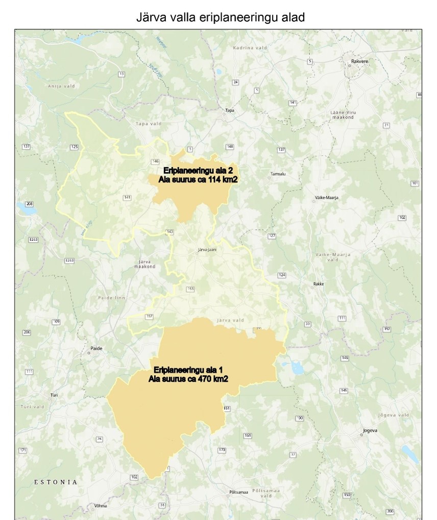 Järva Vallavalitsus teatab, et Järva Vallavolikogu 31.08.2022 otsusega nr 57 algatati Järva vallas kahe ala suhtes (ala suurus kokku ca 584 km2) kohaliku omavalitsuse eriplaneering ja keskkonnamõju strateegiline hindamine koos vajalike uuringute läbiviimisega tuuleparkide ja nende toimimiseks vajaliku taristu rajamiseks sobivaima asukoha leidmiseks.
