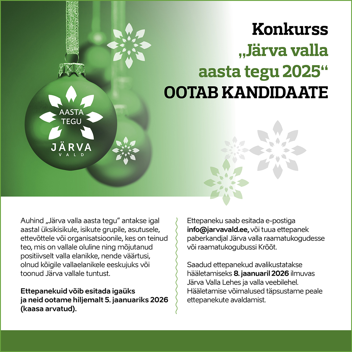 Ambla23. detsember kell 15–18 endises Ambla koolimajas (Pikk 37) Ambla jõululaat. Ootamas on soe jõulumeeleolu, muusika, erinevad etteasted, käsitöö, küpsetised ja jõulukaup – kõik see, mis toob südamesse jõulurõõmu […]